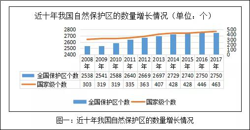 党的十九大报告提出,要“坚持人与自然和谐共生”,“树立和践行绿水青山就是金山银山的理念”。自然保护区的建立无疑是保护生态环境和自然资源的最直接、最有效的途径。根据中国环境状况公报数据显示,截止到2017年底,我国共建立自然保护区2750个,总面积147.17万平方千米,占陆域国土面积的14.86%,为保护我国生物多样性、保障中华民族永续发展等方面发挥了重要作用。