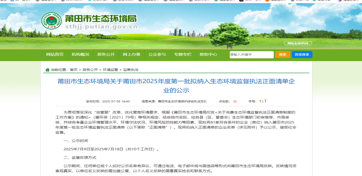 下一步,莆田市生态环境局将持续探索正面清单与信用评价的融合应用,扩大非现场监管覆盖面,让监管更精准、服务更贴心,以生态环境保护高质量发展助推营商环境持续优化,为莆田市经济社会发展注入绿色活力。