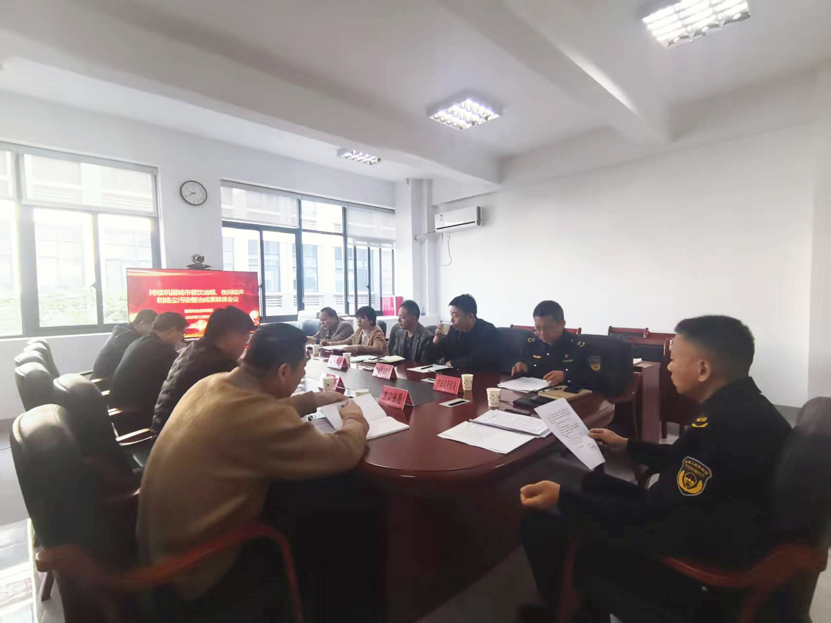 为持续巩固城市餐饮油烟、夜间噪声和扬尘污染(以下简称“三类问题”)整治成果,2025年12月26日,莆田市生态环境局组织召开持续巩固“三类问题”整治工作成果联席会议,市公安局、住建局、城市管理局、交通运输局、自然资源局、文化和旅游局、市场监管局和湄洲湾港口发展中心等部门参会。会议通报了今年全市“三类问题”投诉情况并部署下一步工作;各部门汇报了持续巩固“三类问题”整治成果工作开展情况并提出下一步工作计划。