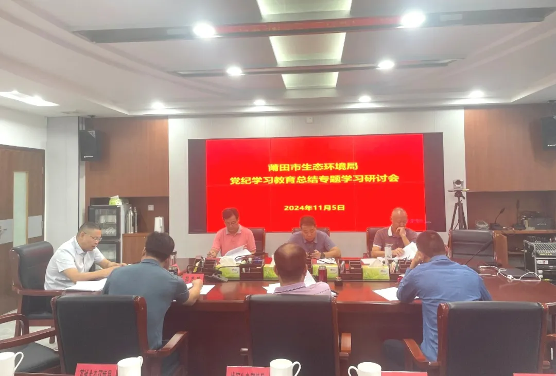 11月5日,莆田市生态环境局召开党纪学习教育总结专题学习研讨会,总结全局党纪学习教育开展情况,部署推进下一步常态化长效化工作。局党组书记、局长陈龙贤主持会议,局党组理论学习中心组全体成员结合工作实际,围绕党纪学习教育情况作总结交流发言。